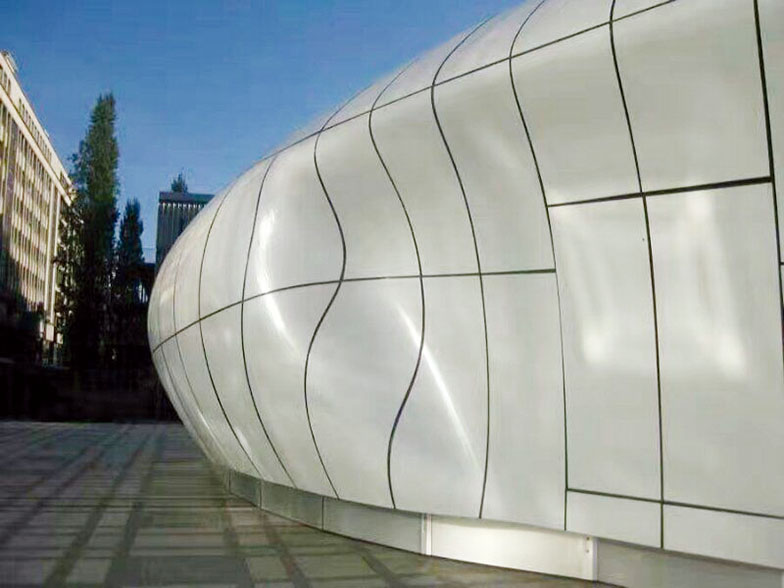 雙曲鋁單板的加工難度較大,對機(jī)器的精度及技術(shù)工人的操作要求較高,具有很強(qiáng)的技術(shù)含量。我司可依據(jù)客戶的需求,針對各種曲率進(jìn)行設(shè)計(jì)加工,凸顯工藝水平,滿足建筑物裝飾的個性化要求。